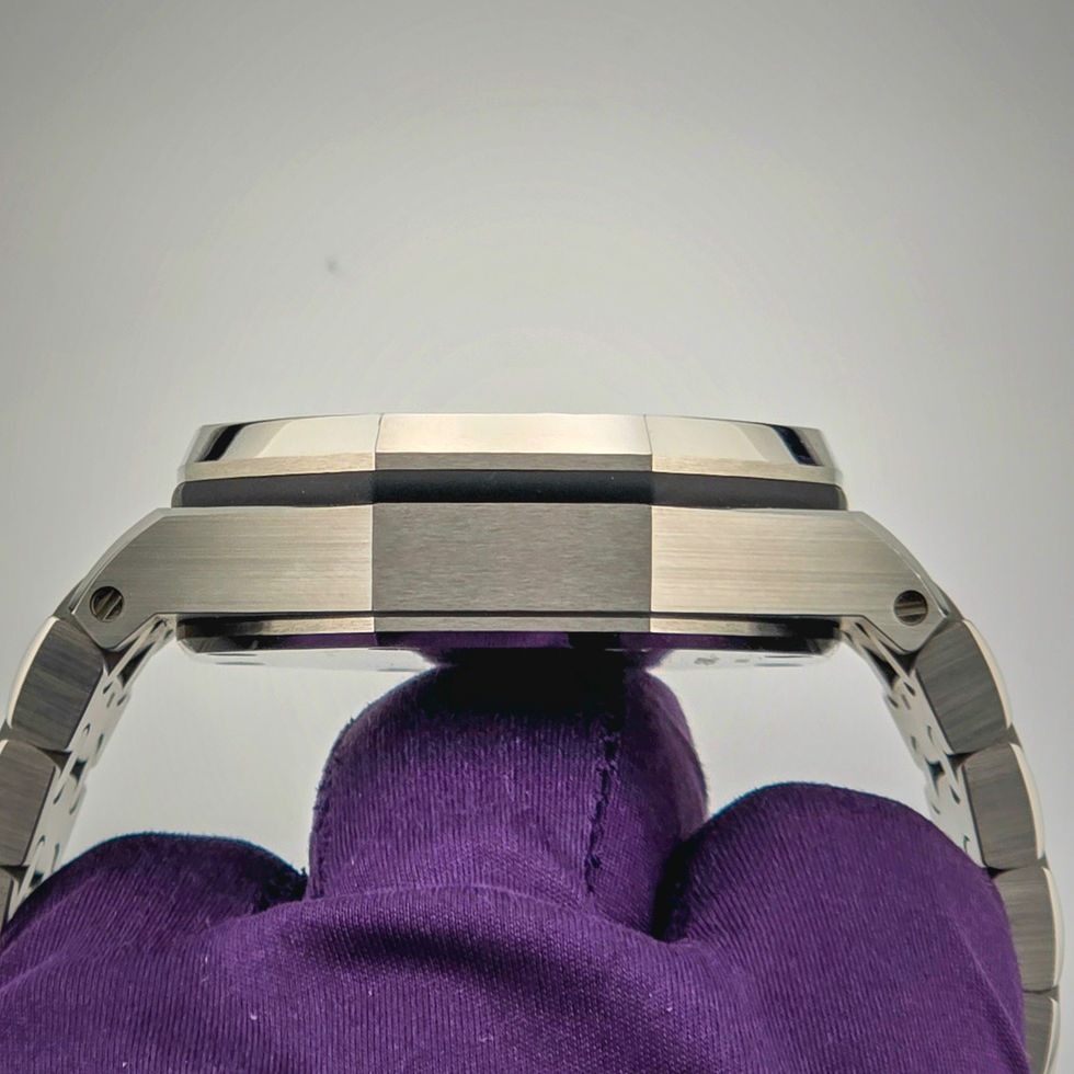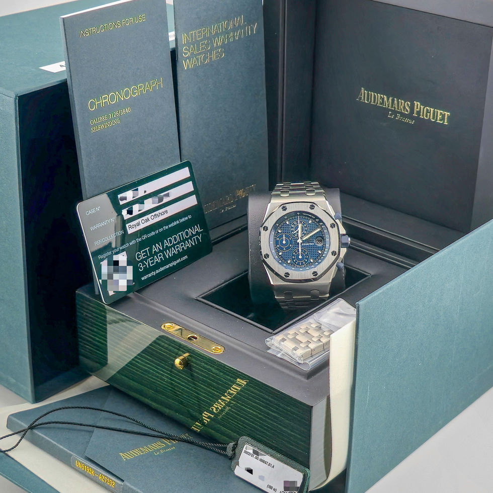 Originally released in 1993, the first AP Beast made quite the statement. In 2018, AP decided to update the iconic timepiece for its 25th anniversary. The striking dial features a blue 'Petite Tapisserie' dial with blue counters and luminous white gold hands and hour markers. It features a glare proof sapphire crystal. A unique and instantly recognizable timepiece, The Beast has and always will be a show stopper.